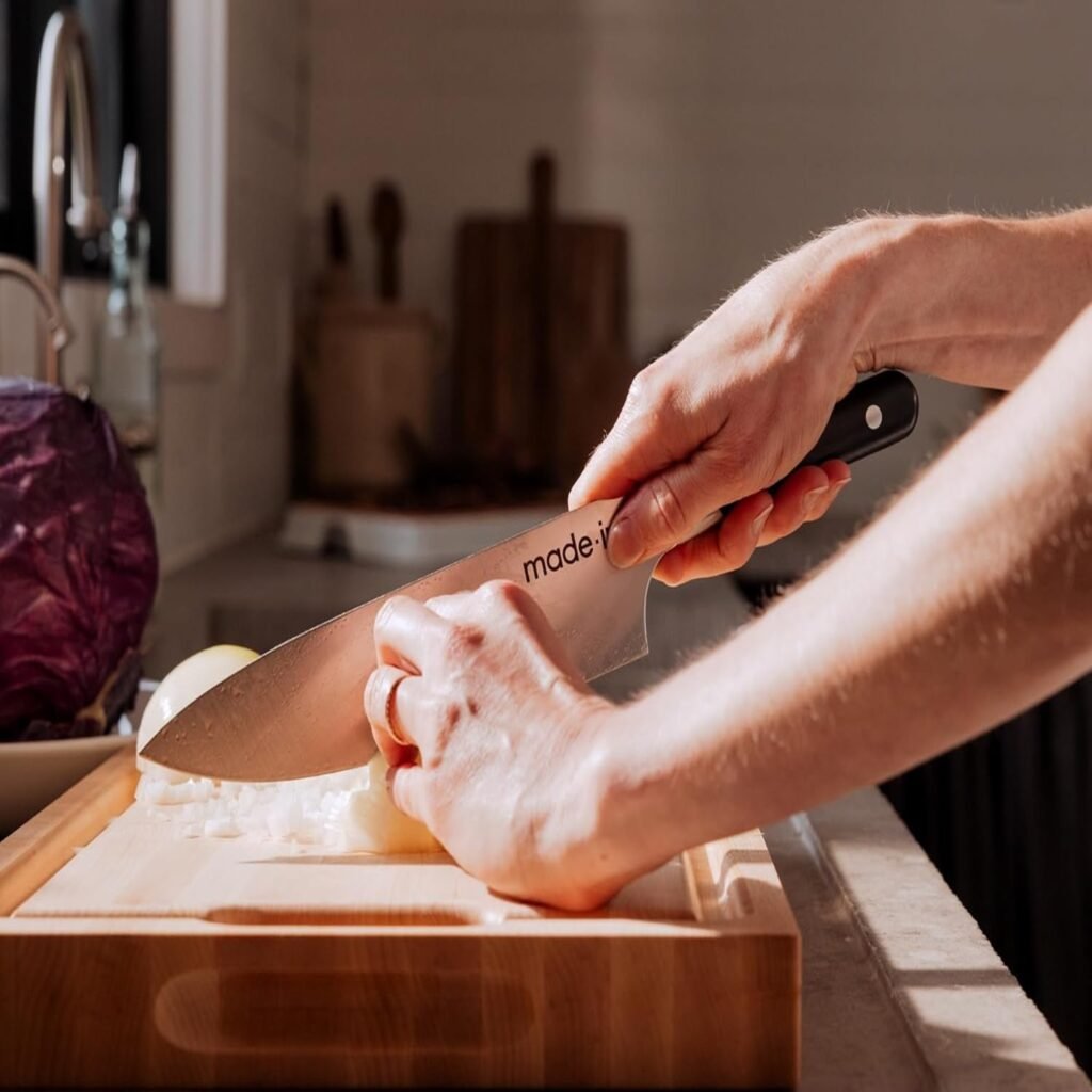 • Wüsthof Classic 8-Inch Chef’s Knife: Esta marca alemana es sinónimo de tradición y excelencia. El cuchillo Wüsthof Classic es ideal por su hoja de acero al carbono de alta calidad, que previene el óxido y las manchas. Es un cuchillo robusto y equilibrado, perfecto para tareas de corte exigentes​.