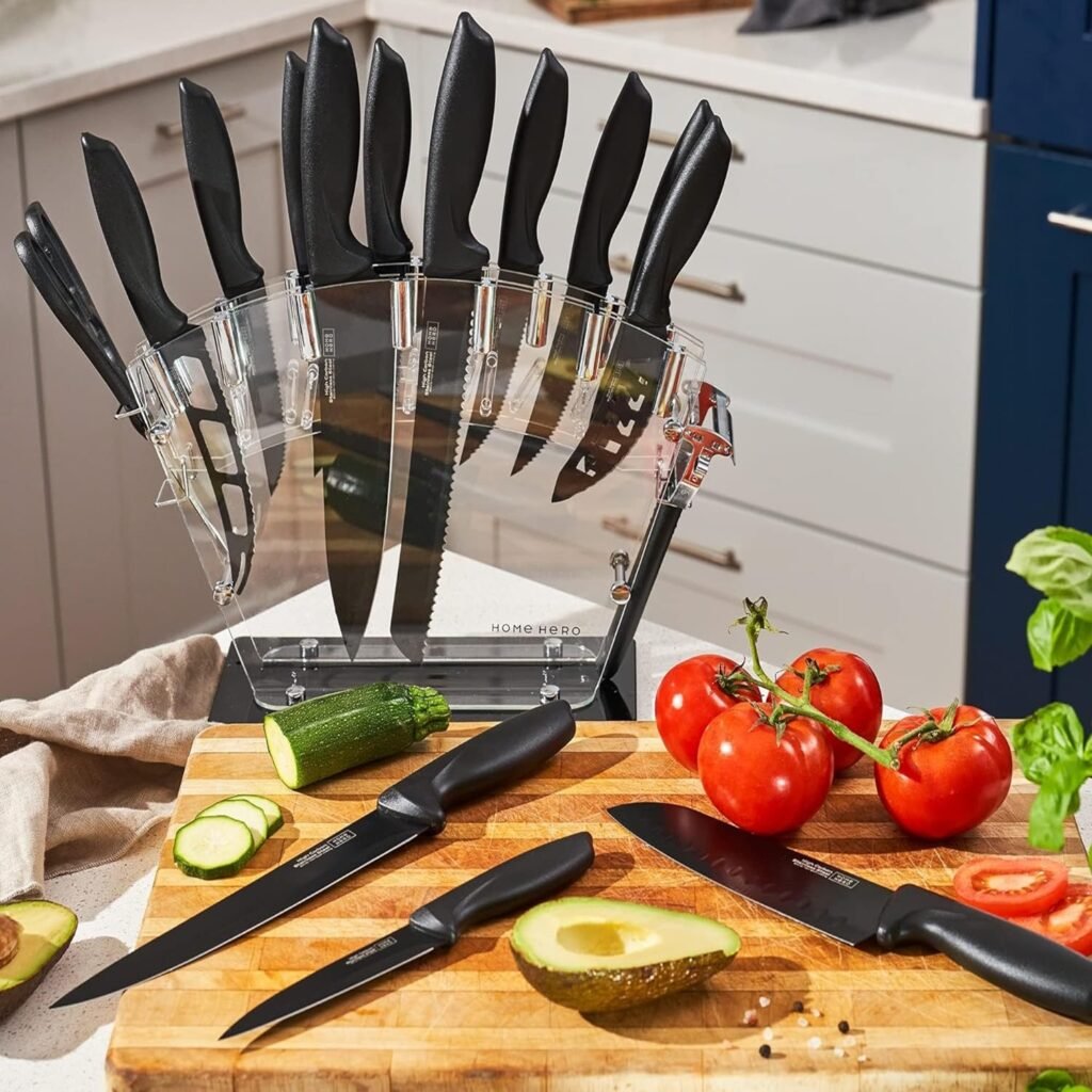 Los Set de Cuchillos para Chef con Estuche, Bloque o Bolsa ofrece elegancia y funcionalidad en tu cocina, estos completos juegos incluye un kit de cuchillos de alta calidad, un porta cuchillos seguro, y en algunos casos un práctico bolso enrollable para los mismos.