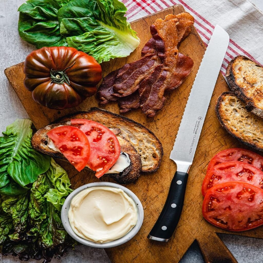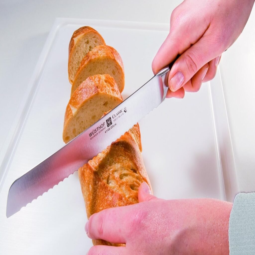 4. Cuchillo para pan: Con una hoja serrada diseñada para cortar pan sin aplastarlo.